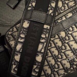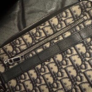 Dior Zipped Pouch with Strap Oblique Jacquard Beige and Black