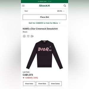 Authentic DiorxKaws crewneck size XL never worn, no tags, like new