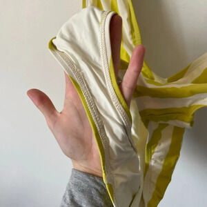 Plunging V- neckline. Adjustable straps. Cheeky back. Size small. No padding.