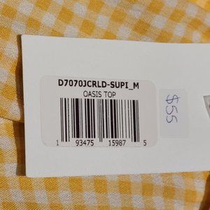 Dippin' Daisys Oasis top features a tube top with ruffle trim on the top and bottom, and tie straps for a custom fit. In checkered yellow and white. 100% Rayon. Made in USA. Size M. NWT