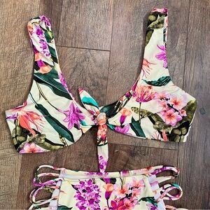 Dippin' Daisy's Tropical Printed High Waisted Tie Front Bikini Size Small