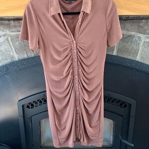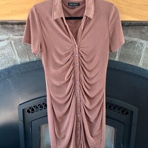 Disco Sheen Button-Down Dress with Ruching & Collar