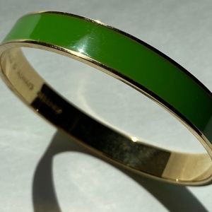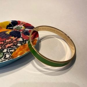 From Kate Spade, 12K Gold Plate bangle bracelet with Green Enamel, The Grass Is Always Greener and Logo engraved inside.