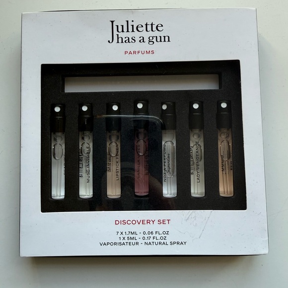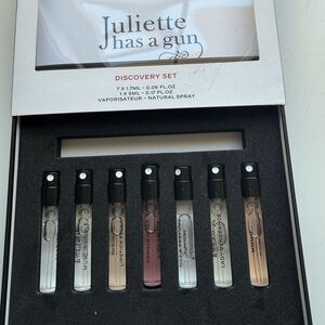 Set Description: This mini set features Juliette’s most coveted perfumes by highlighting the creator’s favorites, all designed to make you feel confident, beautiful, and proud of who you are. The best way to discover these unique scents from the comfort of your home. All scents can be layered with our hero product Not a Perfume.