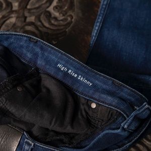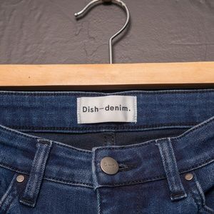 Gently preloved Dish Denim dark wash, high rise skinny jeans.