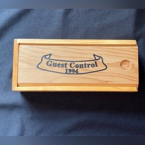 Has never been worn and still has the plastic film on the front and on back cover. Comes in the original wooden box with warranty paper and cardboard sleeve. Matching pin is still sealed in the plastic bag, never opened. Genuine leather band.