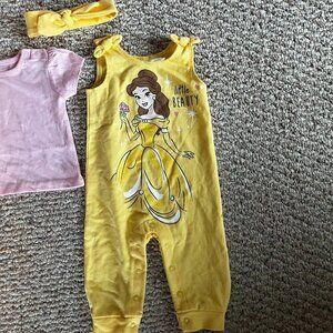 Disney Baby Beauty and the Beast 3 Piece outfit Yellow Pink, 6-9 months Princess