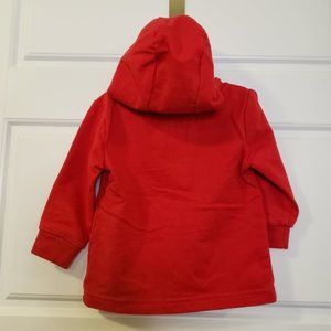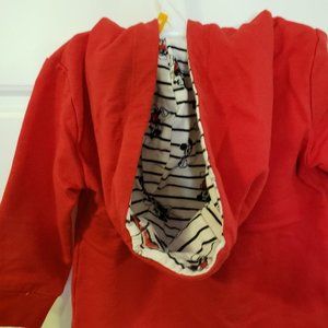 -Bright red sweatshirt with full zipper closure and completed with Mickey Mouse lined hood and embroidered Mickey Mouse Face on front left chest