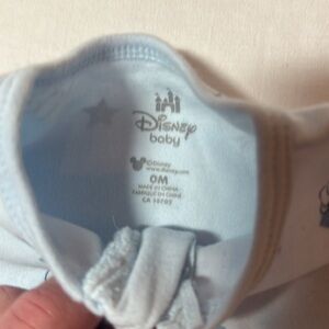 Charming Disney onesie with Mickey Mouse print. Light blue fabric. Cozy and cute for little ones.