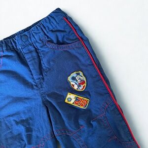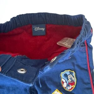 Disney baby pants / Mickey Mouse baby clothes / vintage Disney baby outfit / baby boy pants / baby girl pants / infant fleece-lined pants / newborn Disney outfit / Mickey Mouse embroidered patch / retro baby style / vintage-inspired baby clothes / Disney infant wear / cozy baby pants / toddler Disney fashion / blue and red baby pants / collectible Disney baby
