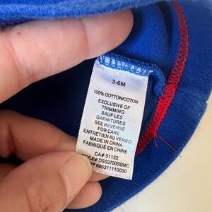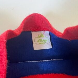 Y2K Disney Baby long sleeve shirt. Nice blue colour with multicolor striped sleeves. Has a varsity style look to it. Embroidered with Mickey & Pluto on the front!