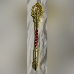 Like new- lightly used for a few hours during a photo shoot at the Bibbidi Bobbidi Boutique at Disneyland, California- where this item was originally purchased in December 2024. Expected & minor scuffs, scratches & wear from being a play toy and travel. Review photos closely for condition. Lights are controlled by button near bottom of wand. View video for visual of light-up feature.