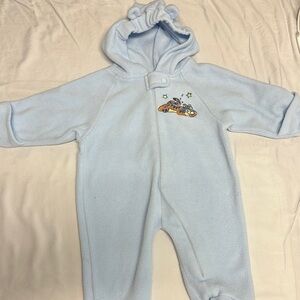 Wrap yourself in the warmth of Disney's blue fleece footies, featuring a cozy hood and charming embroidery on the chest. This one-piece design ensures full-body comfort, making it perfect for lounging or bedtime. Experience the soft embrace of plush fabric that keeps you snug and stylish.