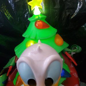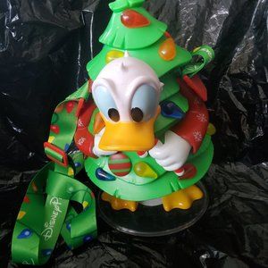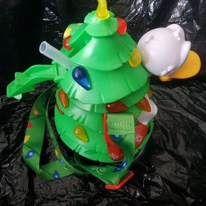 DISNEY 3023 DONALD SIPPER CHRISTMAS TREE , LIGHTS UP TWO DIFFERENT SETTINGS BATTERY RUN ,, USES 2 TRIPLE ""A"" ALREADY INSIDE ,,, HOT OR COLD DRINKS , SIZE 10 IN H BY 6 IN W ROUGHLY , ADJUSTABLE TRAP THAT POPS APART , HOLD DRINKS , TRINKETS, OR JUST USE AS CROSSBODY , DECORATION , OR WHATEVER YOU DESIRE EVEN DECORATE YOUR TREE WITH THEM , ,, MAKES GREAT GIFT.. FINAL SALE