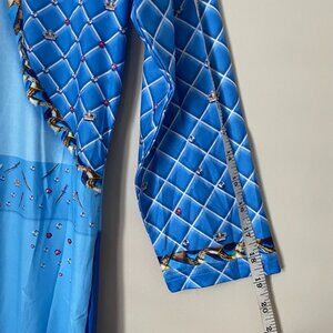 Detailed printed jacket + dress design with royal patterns, jewels, crowns, and sword motifs
