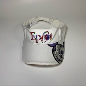 Disney Epcot World Showcase Sun Visor Hat White Mickey Mouse Adjustable HTF
