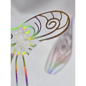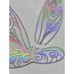 There is no attachment on the dress to connect the wings. Therefore, glue was used in the past. The clothing has some glue residue on it from where the wings were glued.