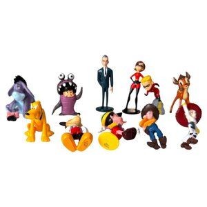 characters are between 2-3 inches. Explore the magic of Disney with this delightful mix of 11 character figurines, perfect for adding a touch of enchantment to any collection or party. Each action figure is designed to bring the charm and whimsy of the Disney universe right into your home, making them ideal for both collectors and young fans alike.Whether used as cake toppers or displayed on a shelf, these figurines capture the essence of your favourite Disney characters. The diverse set offers a variety of figures, ensuring a playful and vibrant representation of the beloved franchise. Add these Disney treasures to your collection and let the storytelling begin.