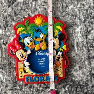 Colorful Disney photo frame featuring Mickey, Minnie, Donald, and Goofy. Perfect for Florida memories. Approx 4.75” high