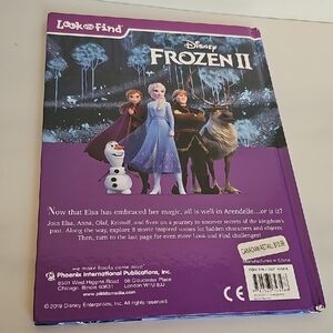 Set of two books: Disney Frozen II Look & Find and Here Comes Valentine Cat. Perfect for kids. the book valentine cat has 2 pages with tear please see photos.