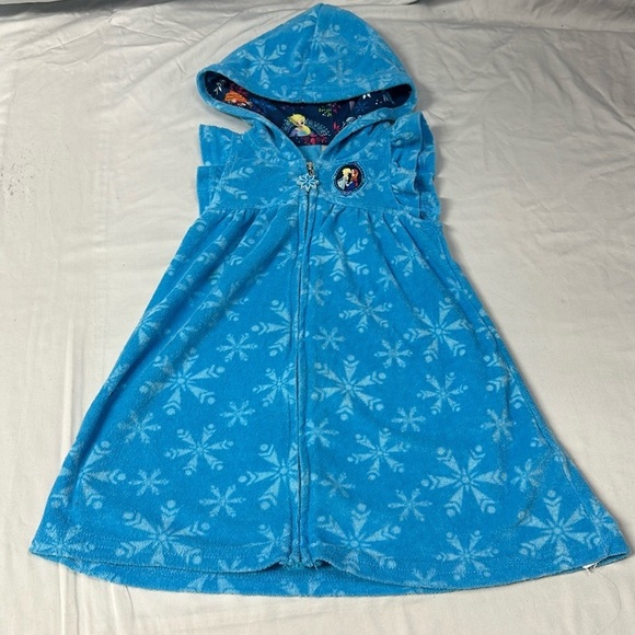 Disney - Frozen full zip hooded terry dress with ruffled cap sleeves.