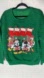 Green sweatshirt with Disney characters in holiday outfits and stockings.