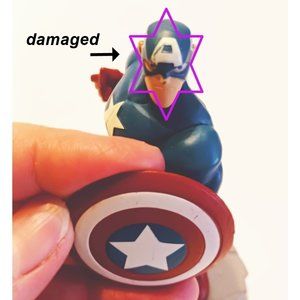 Most of the figures are in excellent condition, except for Captain America who has slight damage to the paint on the face (See photo).