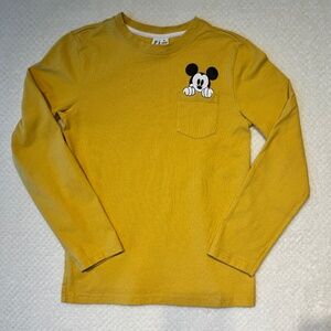Disney ✕ Janie and Jack Kids Tee (10) Mickey Pocket Mustard Yellow Long Sleeve