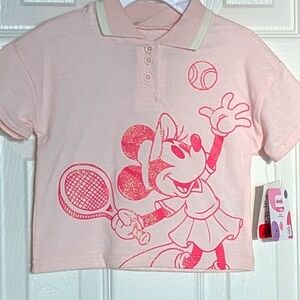 NWT Disney Junior (12 Months) Pink Glitter Minnie Mouse Tennis T-Shirt/Polo Shirt