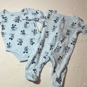Charming Disney bodysuit/Onesie and sleeper set with playful Mickey Mouse design. Soft and cozy for everyday wear.