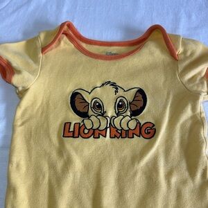 Charming Disney Lion King bodysuit. Features Simba design. Bright yellow with orange accents.