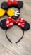 Delightful Disney inspired Minnie Mouse and Mickey Mouse mouse ear headbands with sparkling sequinned red, yellow, and black designs.