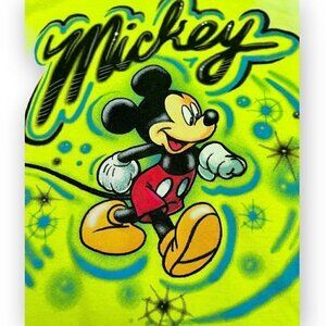 Disney Mickey Mouse Neon Green Airbrush Long Sleeve Tee Shirt