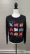 Black soft knit sweatshirt with screened Mickey Mouse images. Ribbed collar, cuffs and hem.