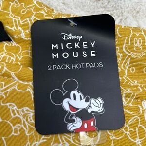 Set of two yellow hot pads featuring Mickey Mouse design. Perfect for kitchen use. Brand new with tags.