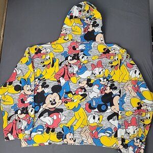 Disney Mickey Mouse Zip Up Fleece Hoodie Vintage 90s All Over Print