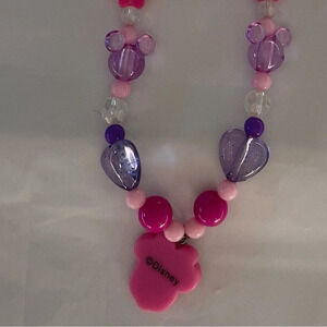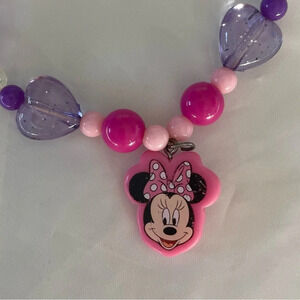 Add a touch of Disney magic to your style with this delightful Minnie Mouse beaded necklace. Crafted with pink, purple, and white beads on elastic threading, it's a whimsical piece that captures the essence of Disney.
