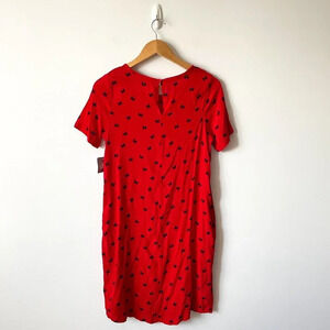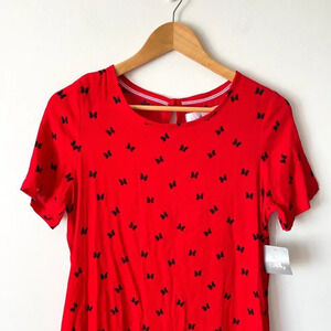 Disney Minnie Mouse Bow Print Short Sleeve Shift Dress Red Size Small