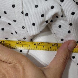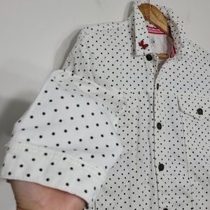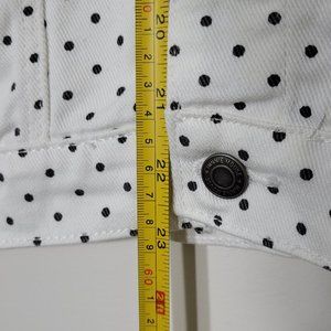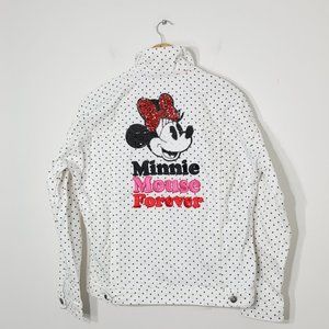 Disney Minnie Mouse Forever White Polka Dot Jean Jacket Sequin Back Button Pin Detail Lapel Pockets Cotton