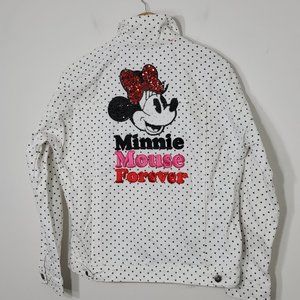 Disney Minnie Mouse Forever White Polka Dot Jean Jacket Sequin Back 100% Cotton