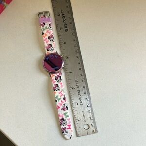 AI description: Cute Minnie Mouse watch with LED display. Features pink and purple colors. Perfect for Disney fans.
