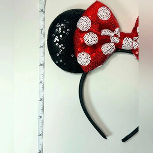 Child Headband, Minnie Mouse Ears w/Bow and Sequins.