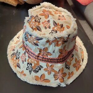 Nothing tops island life like this adorable Moana bucket hat. The perfect topper for any spring or summer look, it has a sunny allover tropical floral pattern. The frayed trim accentuates the easy-going style and the contrast trim adds a touch of class. You might say it's a first class ticket to paradise, no matter where your day lands.