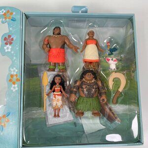 - Includes small dolls Moana and the demigod Maui, her father Chief Tui and her Gramma Tala, plus her rooster Heihei and her pig Pua figures.