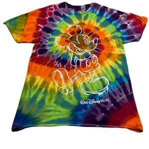 Vibrant tie-dye tee featuring Mickey Mouse. Perfect for casual outings.
