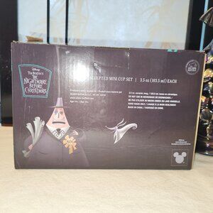 Sip your coffee or other hot drink in one of these TikTok viral Nightmare Before Christmas Demitasse Mugs. Packaged as a set of 4 that includes all of the iconic characters from Disney's Nightmare Before Christmas, these mugs feature full face representations of their characters and look just as great as kitchen decor as they do when they are being used to enjoy your favourite drink! Each cup holds approximately 3.5 ounces. NOTE: There is a small tear in the cardboard packaging on the top right side of the box. Please see photos.