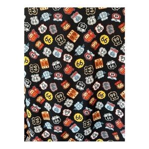 Disney Parks Cars Route 66 Allover Print Button Front Shirt Size XL. 100% Rayon. Black button up with red yellow blue and white. Has a front pocket.