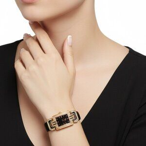 Add a touch of Disney magic to your collection with this official Disney Parks wristwatch. This art deco elegant style watch features a black and gold design with a classic Mickey Mouse silhouette on the face. The bezel is accented with sparkling rhinestones/crystals, adding a touch of glamour.
