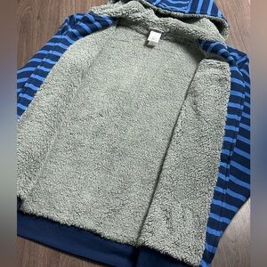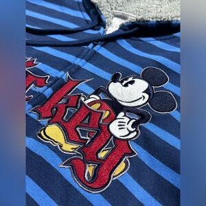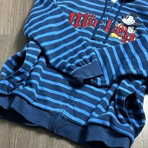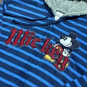 Men’s Disney Parks Mickey Mouse Full Zip Hooded Jacket Blue Striped Fleece Lined