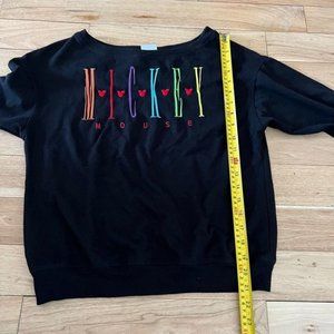 Solid Black long sleeve tee from Disney Parks with embroidered Mickey spelled out